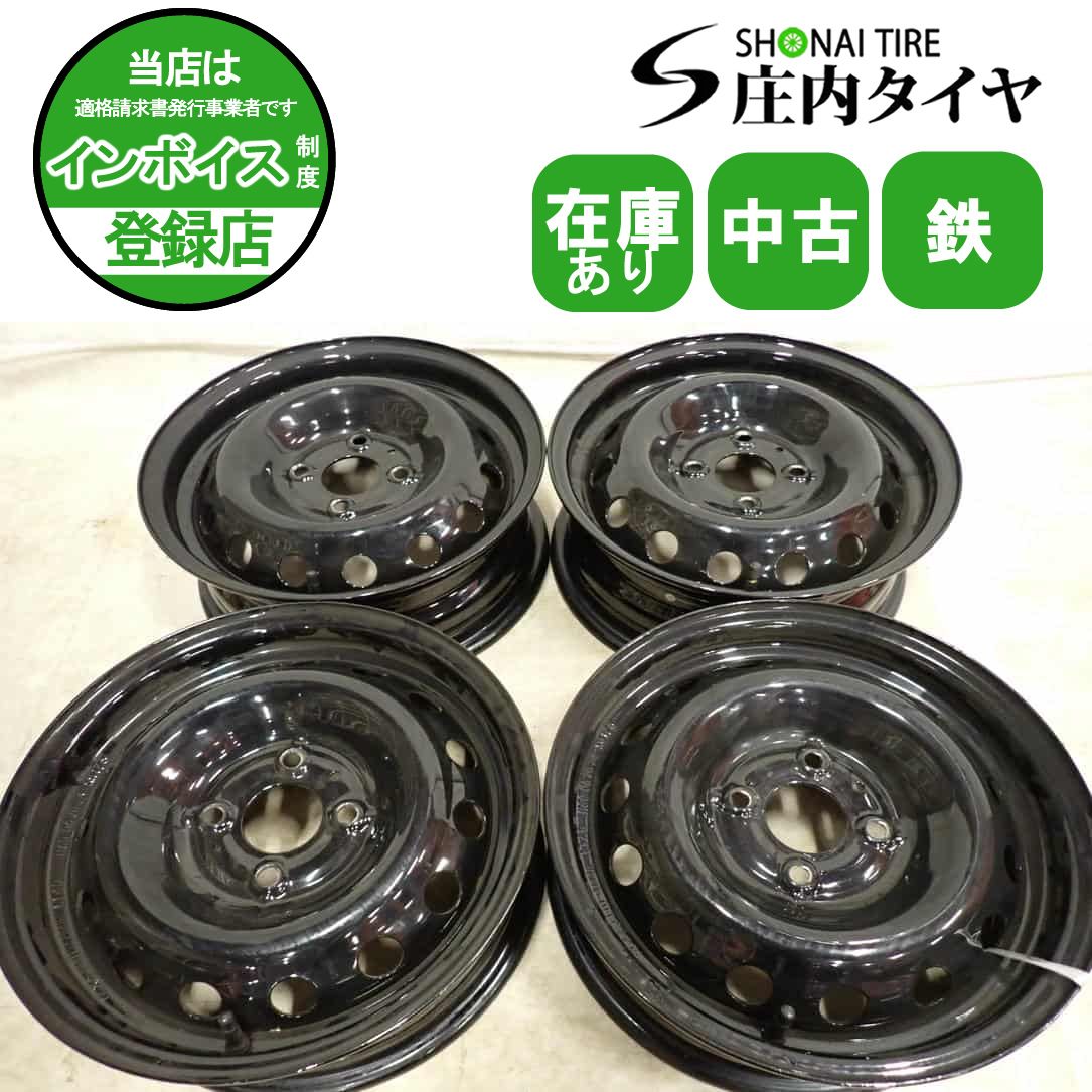 未使用 アウトレット商品 4本SET 会社宛 送料無料 14×5J SHONE ブラック 鉄 スチールホイール 4穴 PCD100mm +40 ハブ径60mm 特価 NO,F5301