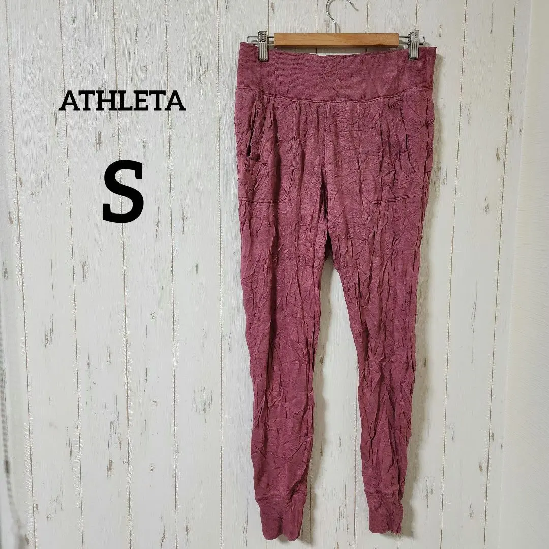 ATHLETA【S】 しわ加工 ピンク カジュアルパンツ 伸縮性◎ヨガ スポーツ