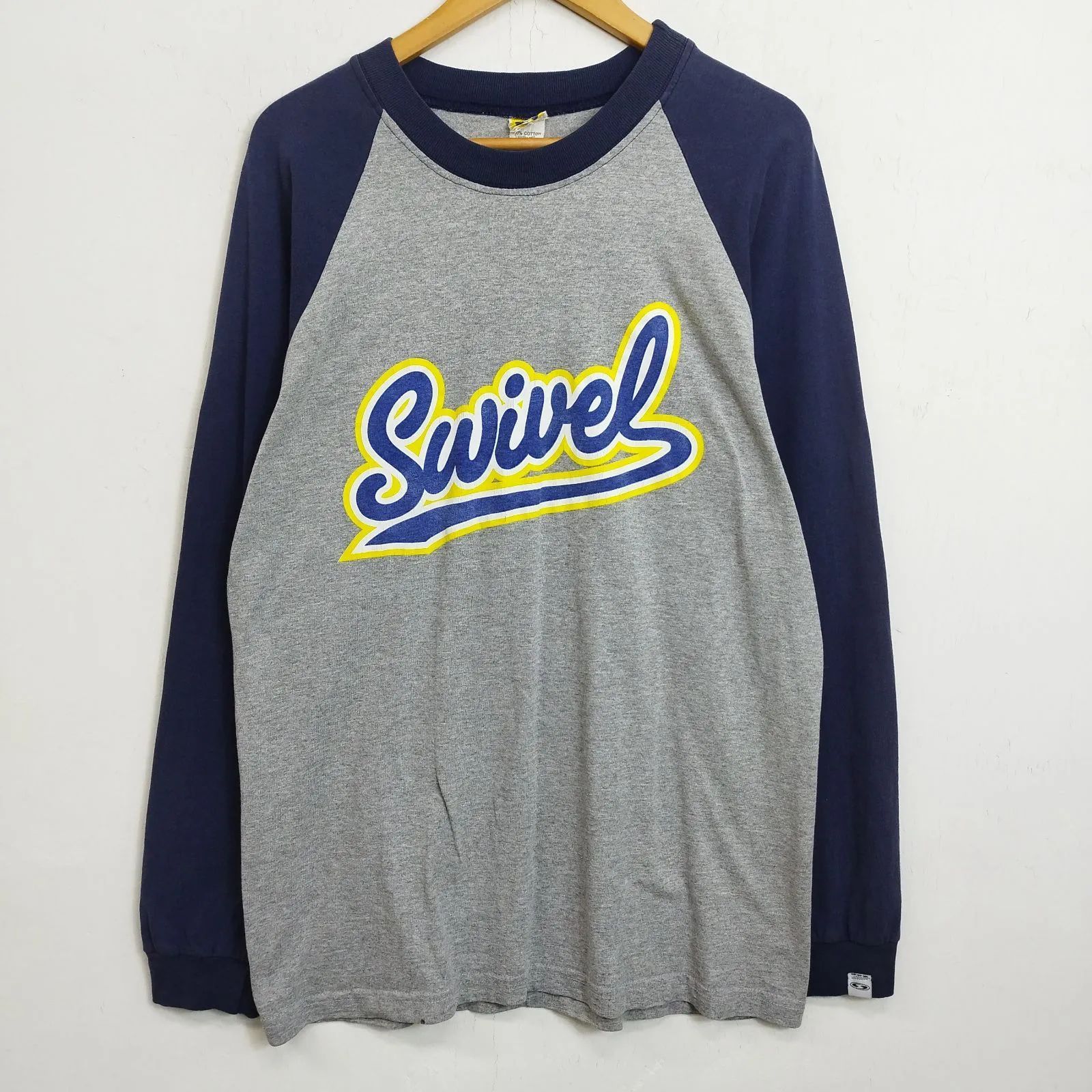 Swivel スウィベル ラグラン ロンT 長袖 フロント ロゴ プリント コットン USA製 古着 VINTAGE ネイビー グレー M D245