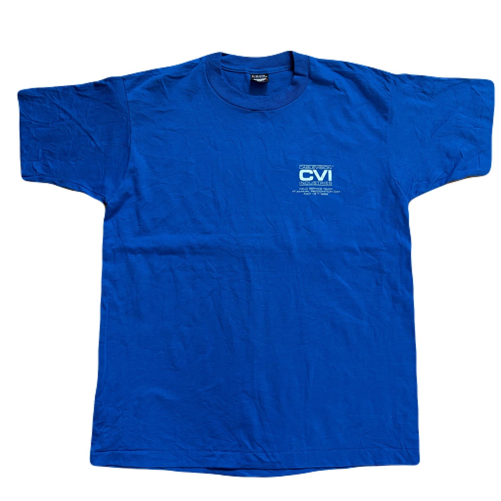 SCREEN STARS BEST 90年代/90’s ヴィンテージTシャツ フロントバッグプリント 半袖 カットソー シングルステッチ 企業ロゴプリント USA製 XLサイズ ネイビー