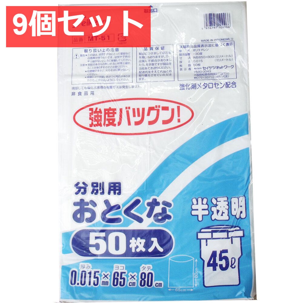 分別用ごみ袋 半透明 45L 0.015×650×800mm 50枚入 9個セット まとめ売り