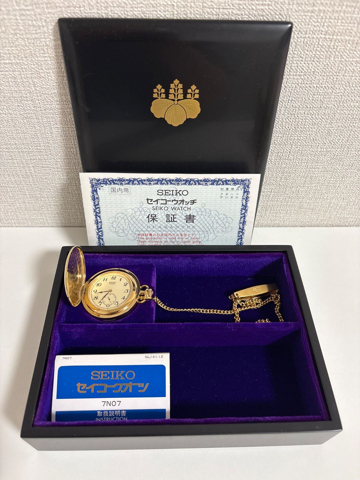 美品 電池交換済 SEIKO セイコー 懐中時計 贈 内閣総理大臣 記念品 会津塗小箱付き