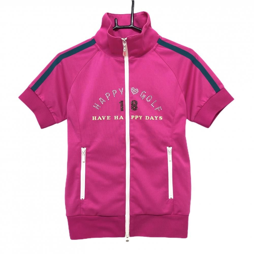フィラゴルフ 半袖ジャケット ピンク×白 肩2ライン フロントスタッズ レディース M ゴルフウェア FILA GOLF