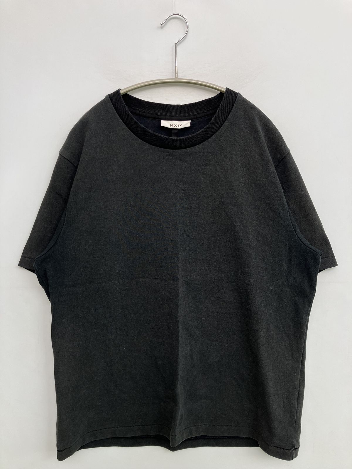 MXP Tシャツ/カットソー L ブラック 無地 ミドル丈 半袖 クルーネック(丸首)