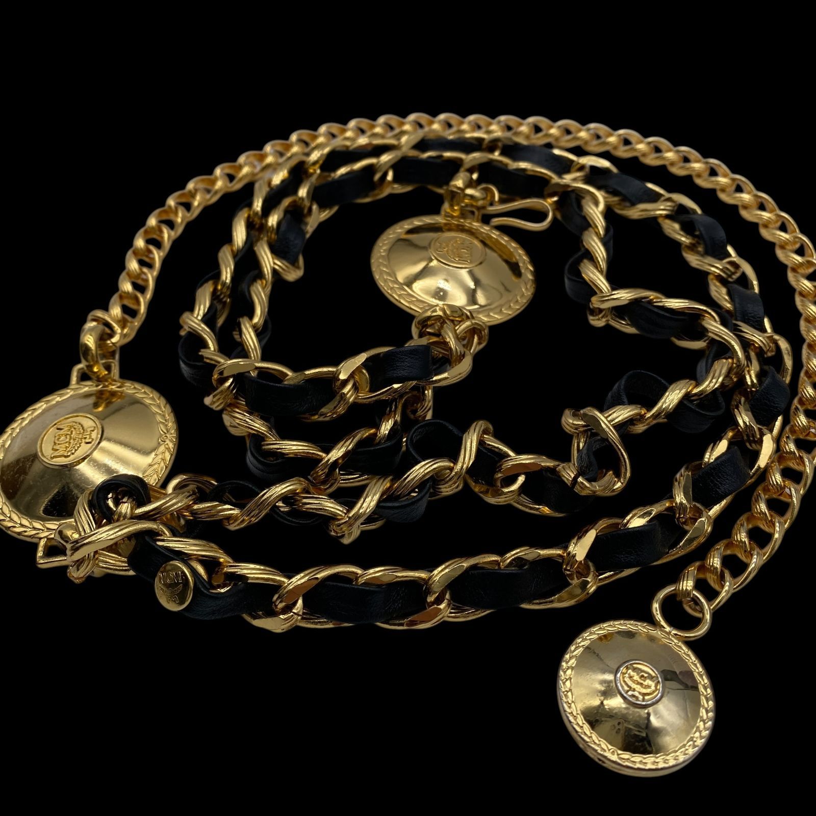 MCM エムシーエム チェーンベルト 小物 アクセサリー コイン ゴールド ブラック ヴィンテージ