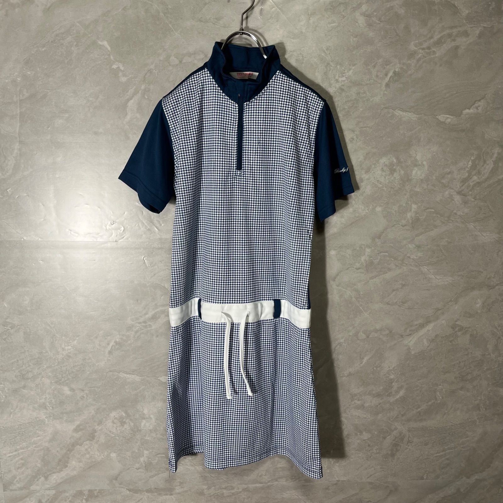 ROCKY HOPPER ロッキーホッパー 千鳥柄 ハーフ ジップ 半袖 ワンピース ゴルフ ウエア M ネイビー