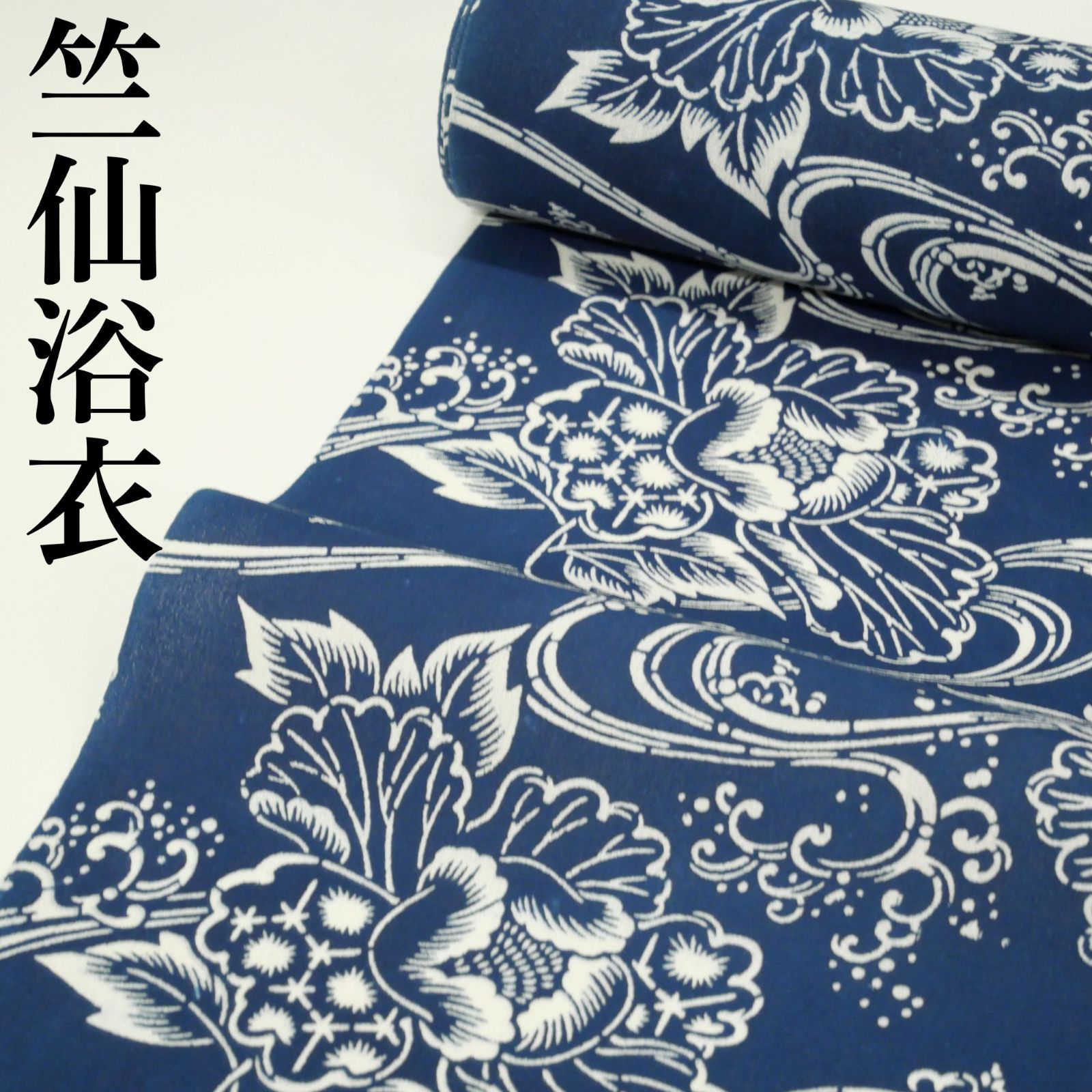 【新品・未仕立て】|竺仙(ちくせん)|訳あり・B反|浴衣|反物|「縮長板本染中形」地染|流水に牡丹|ワケ有りで現品のみ!竺仙が誇る至高の逸品!