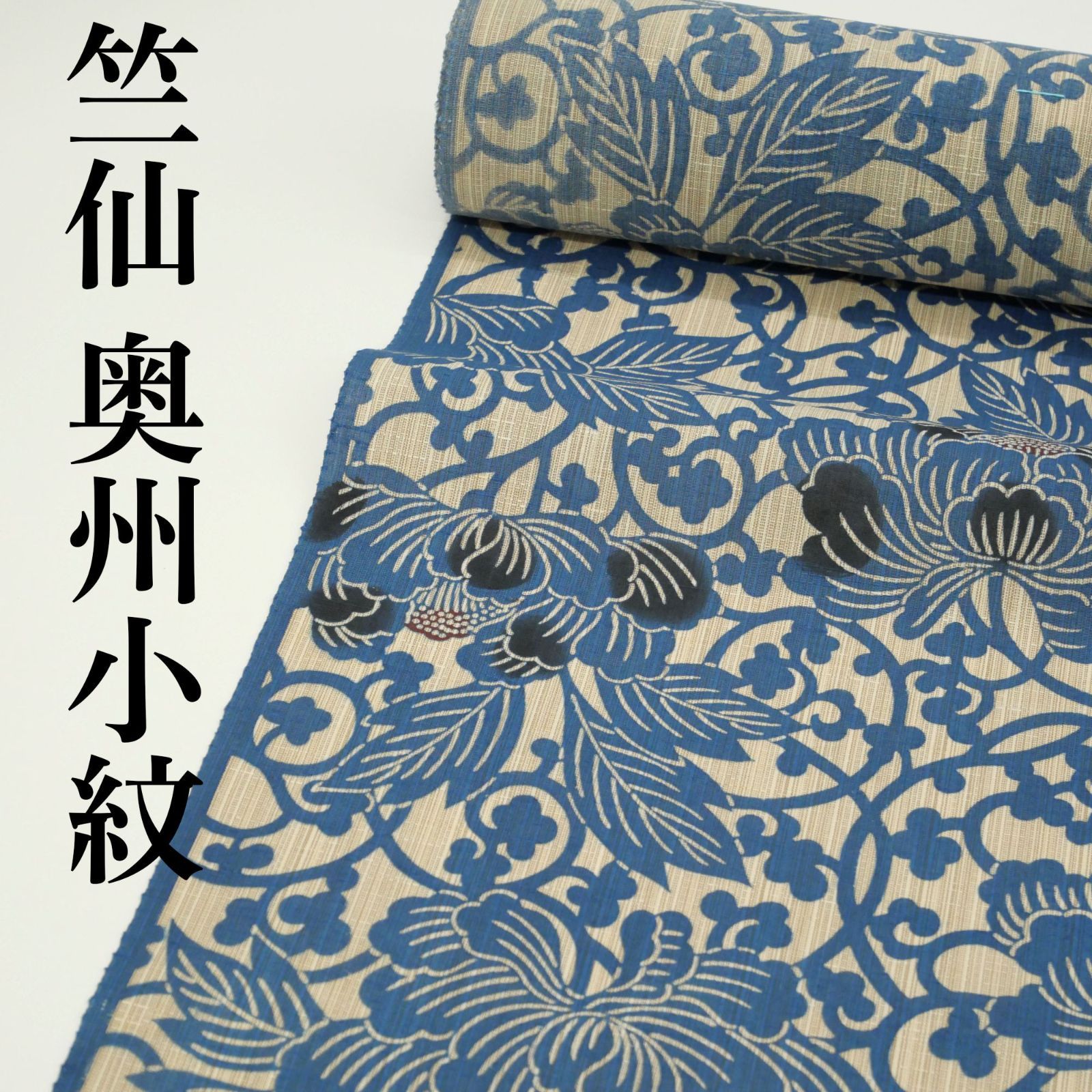 【新品・未仕立て】|竺仙(ちくせん)|奥州小紋|浴衣|反物|牡丹唐草文様|最高級の浴衣!夏着物としても|独特の素材感と伝統的な染め技法
