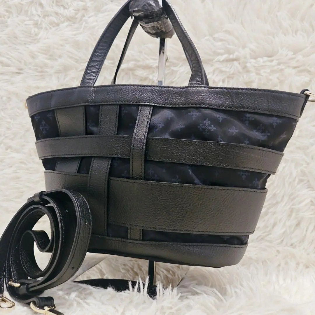 美品 russet ラシット ランダムメッシュ ハンドバッグ 黒レザー