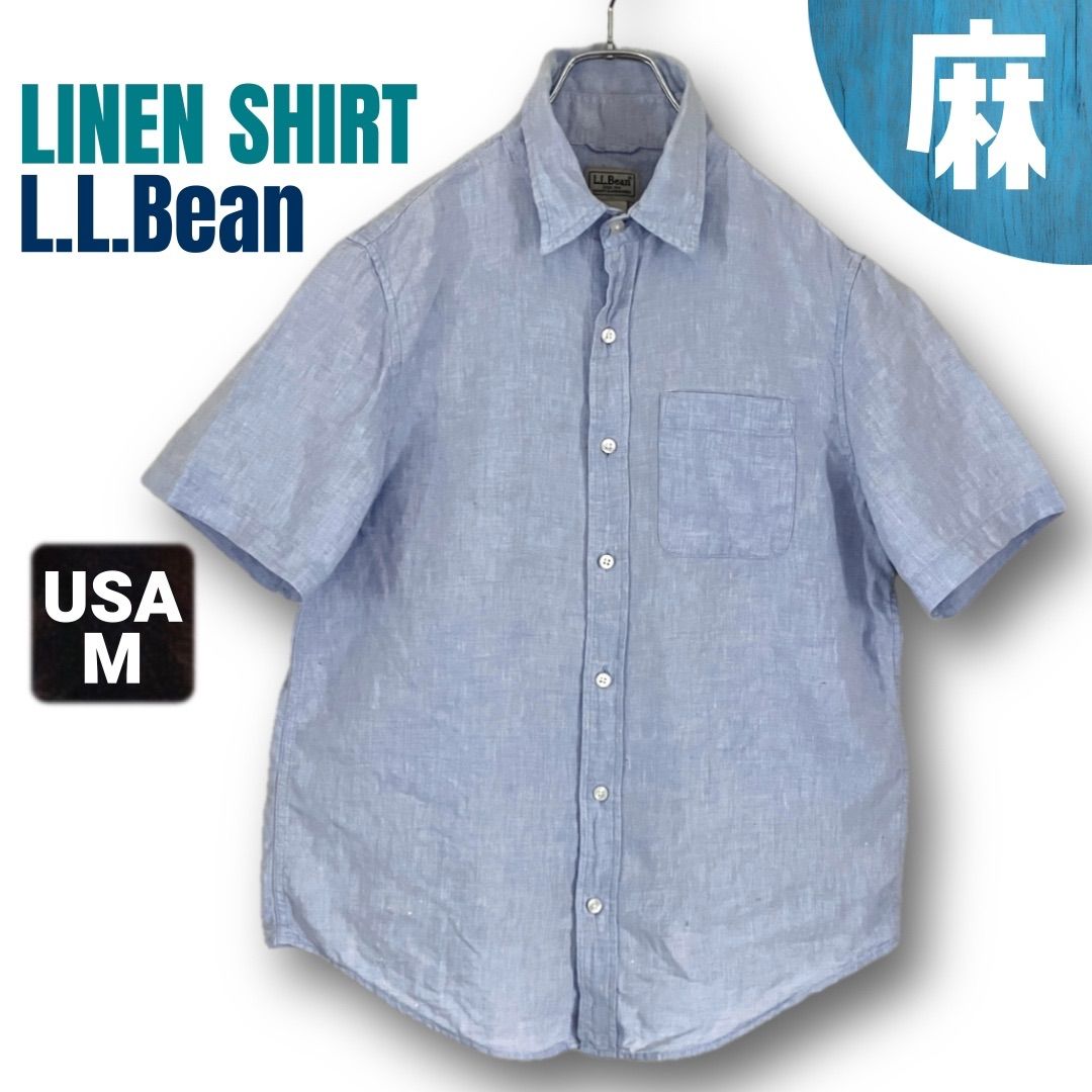 エルエルビーン★麻半袖シャツ★リネンシャツ★LLBean★サックス/青系★USAメンズM #2508A002
