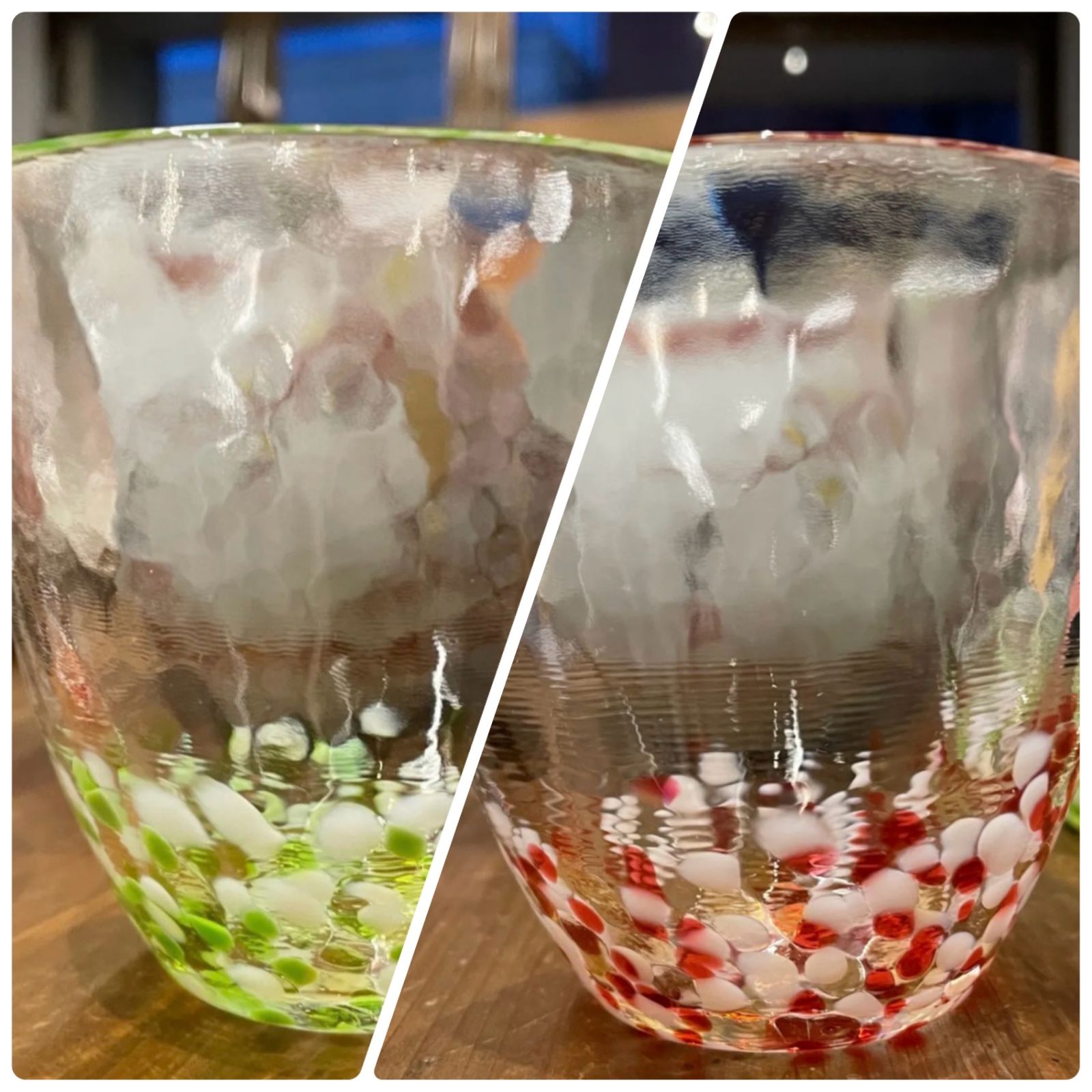 2点まとめ 専用 【東あずま店 併売品】 津軽びいどろ びーどろ 青森県 アオモリ AOMORI 透明 赤 RED レッド 朱色 緑 グリーン GREEN ミドリ コップ グラス glass CUP 硝子 ガラス 可愛い