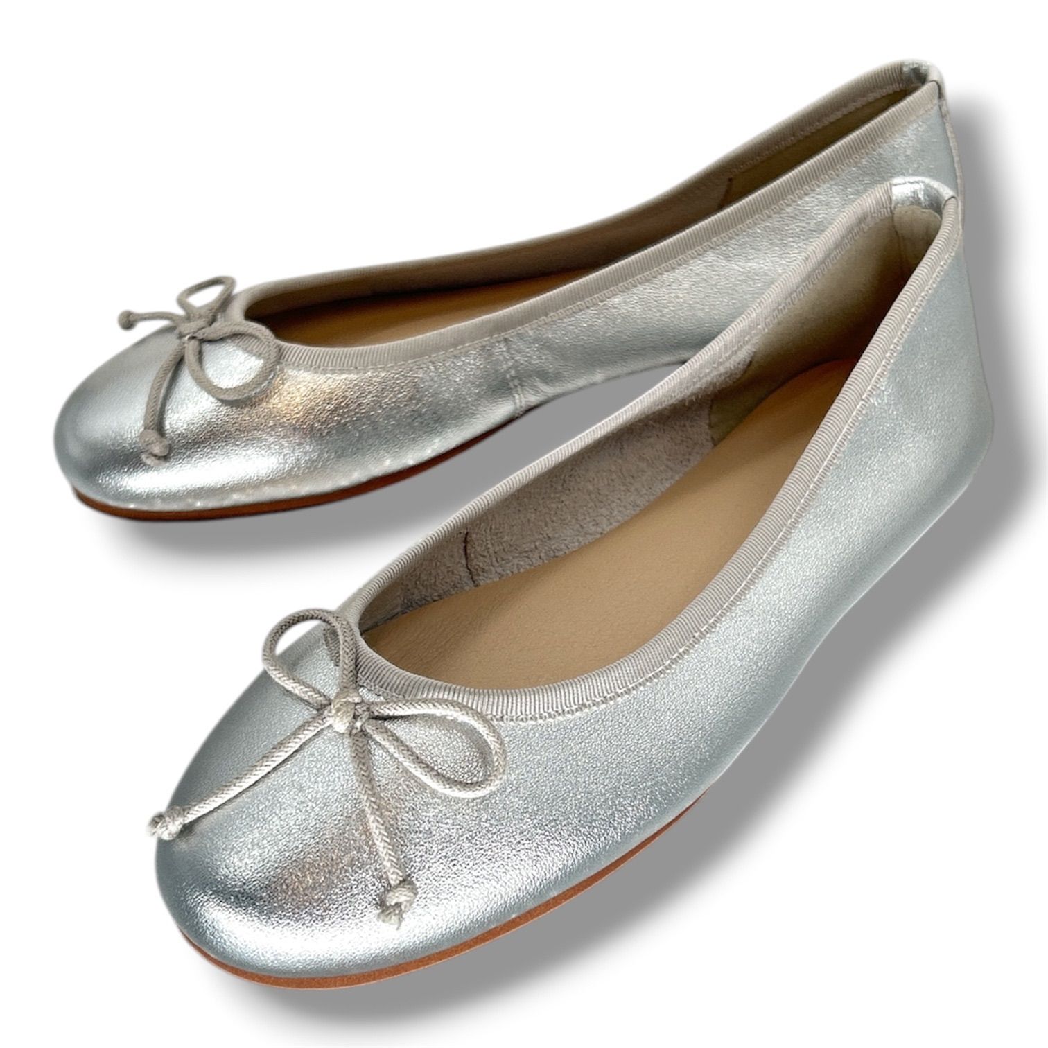 美品 B:MING by BEAMS ビーミングバイビームス バレエシューズ フラットパンプス リボン シルバー 22.5cm レディース 春 夏 ゴーゴー古着マルイ北千住店 26 No.2121