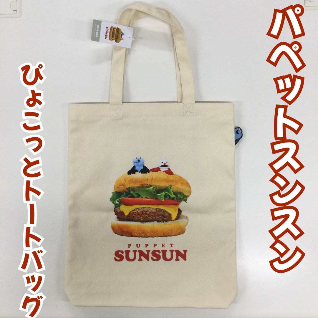 d255【新品・未使用】パペットスンスン ぴょこっとトートバッグ(ハンバーガー) ノンノン スンスン PUPPET SUNSUN バッグ かばん 綿(キャンバス地)A4サイズ 書類 ノート 収納 ショルダーバッグ 内ポケット付き マチ付き 小物収納 通勤 通学