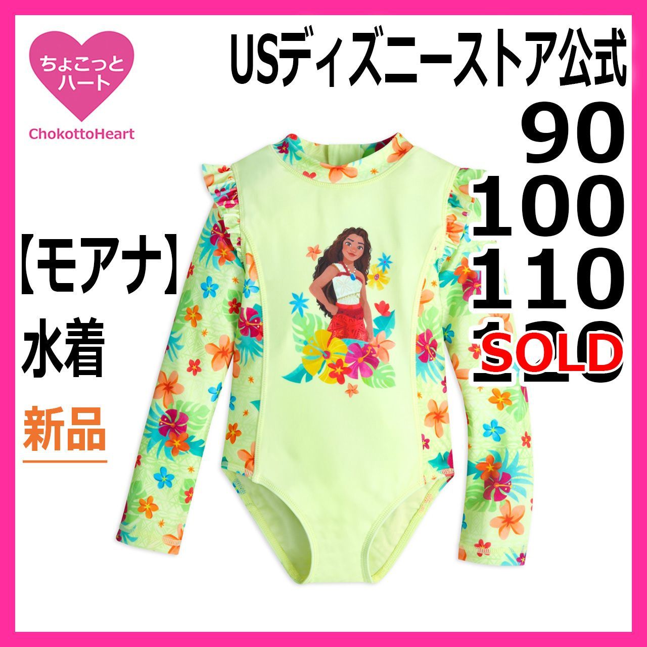 【モアナ水着】日焼け防止UV キッズ水着 90 100 110 ラッシュガード一体型オールインワン水着 ワンピース水着 USディズニーストア 日本未発売 女の子