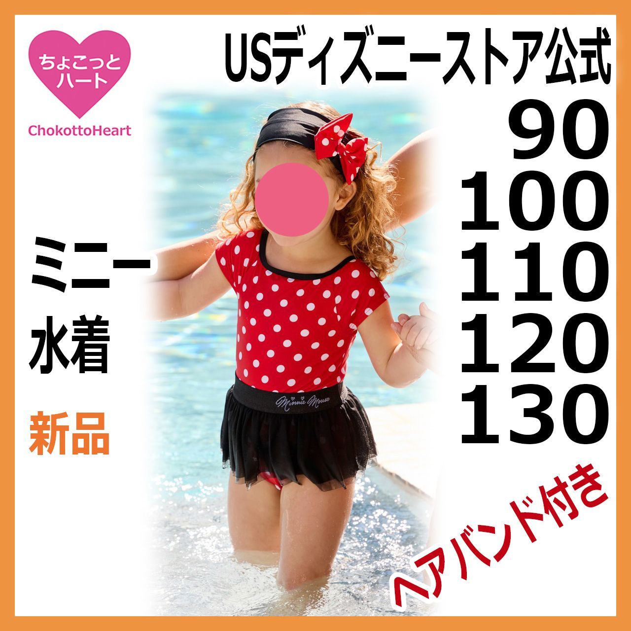 【ミニーマウス】キッズ水着 90 100 110 120 130 ワンピース チュチュ 水玉レッド&ブラック ヘアバンド付き USディズニーストア 日本未発売 子供 女の子