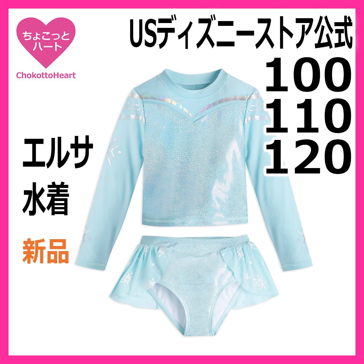 【エルサ】アナと雪の女王 キッズ水着 ラッシュガード&パンツ ツーピース セパレート コスチューム 子供 女の子 USディズニーストア 日本未発売 100cm 110cm 120cm
