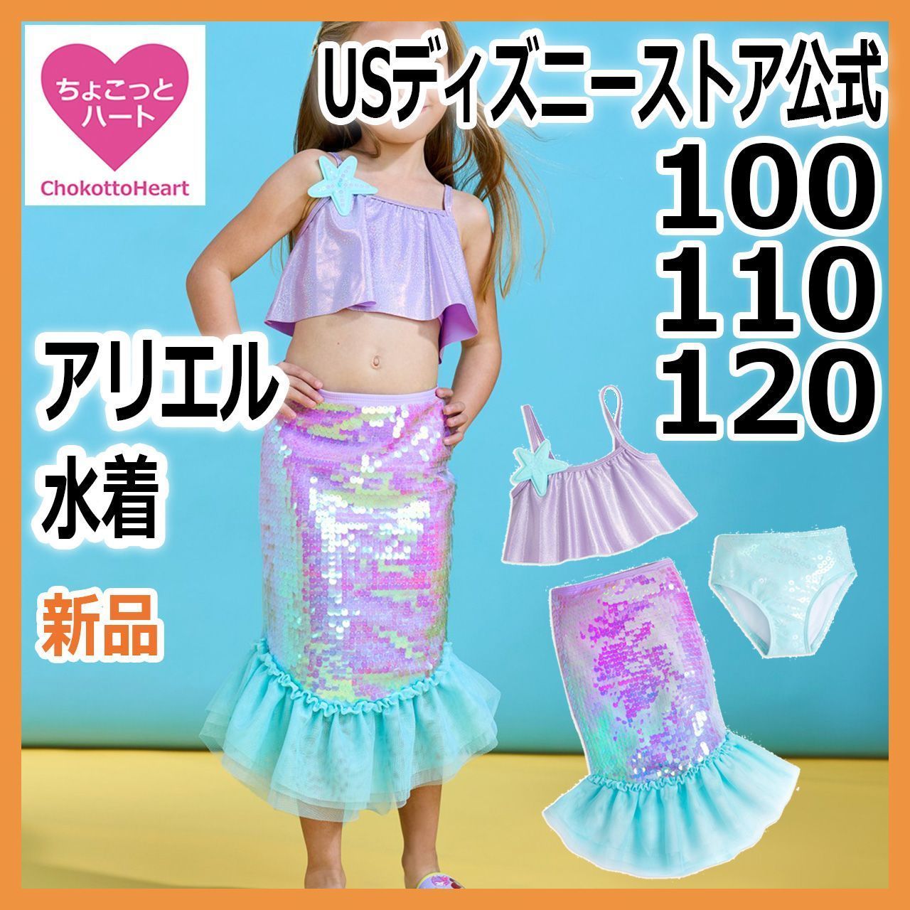 【アリエルマーメイド水着】キッズ水着 海外ディズニー ディズニープリンセス 100cm 110cm 120cm 人魚姫 リトルマーメイド セパレート コスチューム 子供 女の子 USディズニーストア 日本未発売