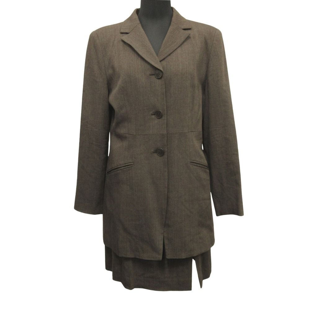 美品 TIFFA ティファ スカート スーツ セットアップ ウール テーラード ジャケット ブレザー 膝丈 11 9 茶 ブラウン レディース 古着 中古 USED
