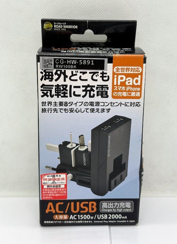 全世界対応 USB対応マルチ変換アダプター RW105BK AC1500W/USB2000mA 中古