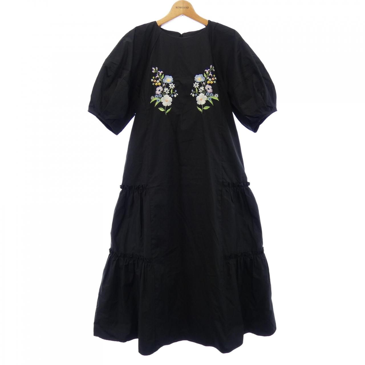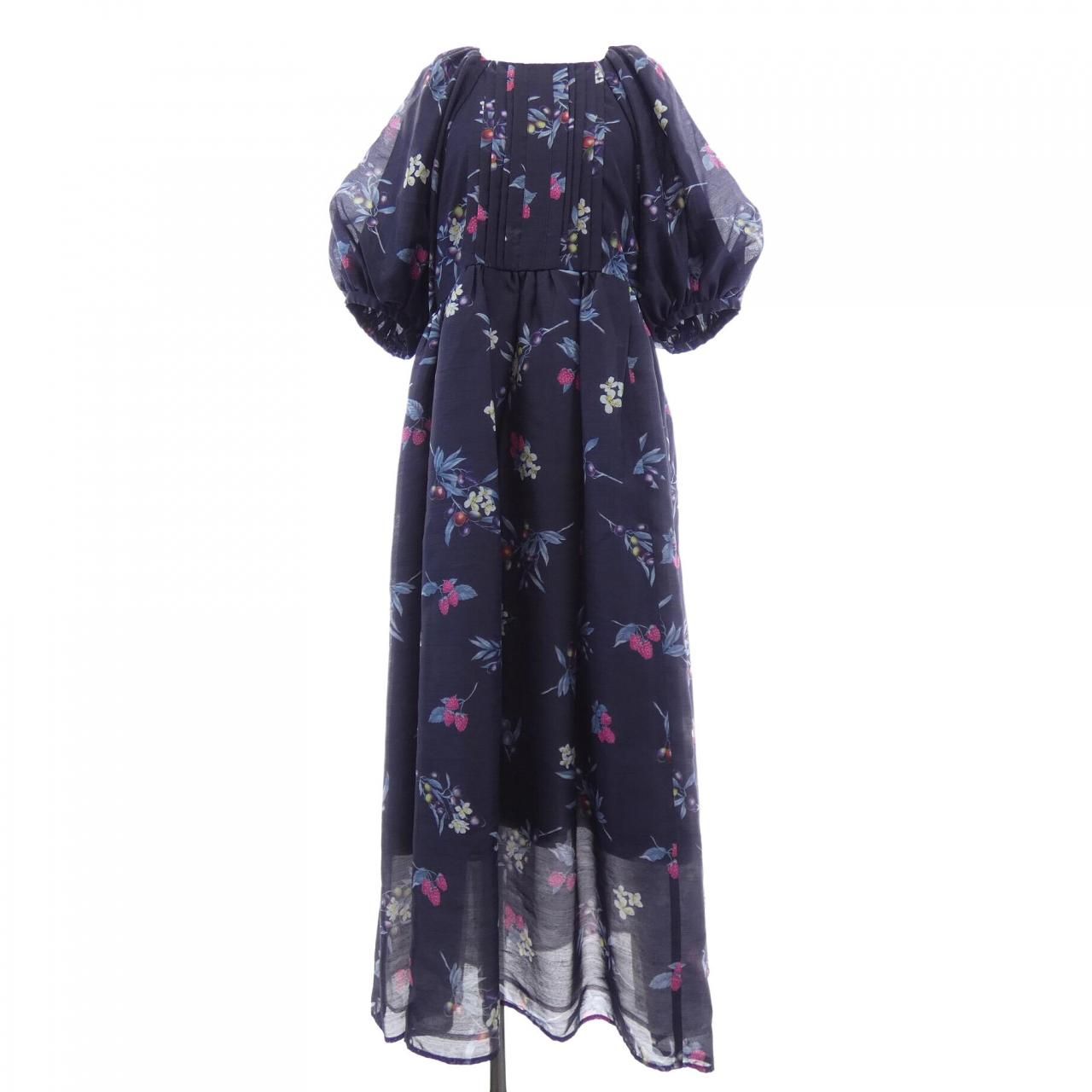 chesty フリル衿にクラシカルなお花模様のロングフリルティアードワンピース
