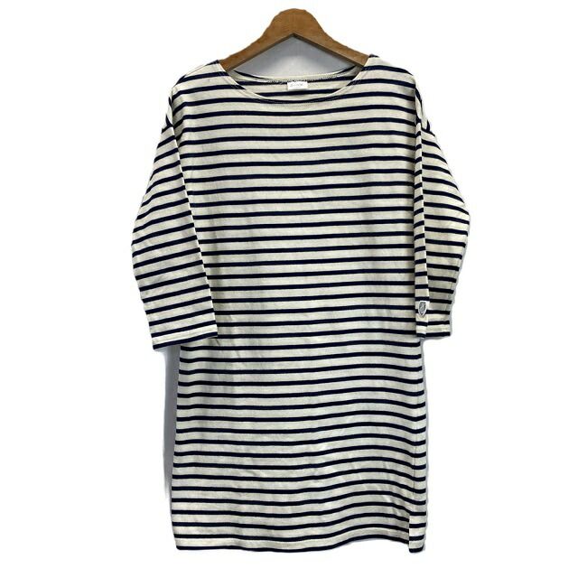 【中古】 ORCIVAL オーシバル ワンピース ひざ丈 七分袖 コットン ボーダー マリン スリット フレンチマリンテイスト ナチュラル カジュアル 古着 /2408