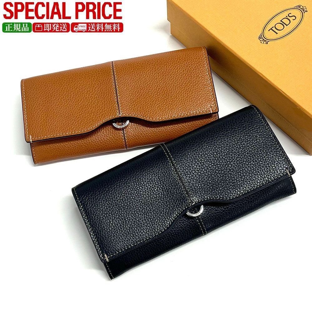 新品 TODS トッズ 二つ折り長財布 XAWDBNB0403 XSO レディース カーフレザー センター シーム フラップ ホットスタンプ ロゴ カラー2色
