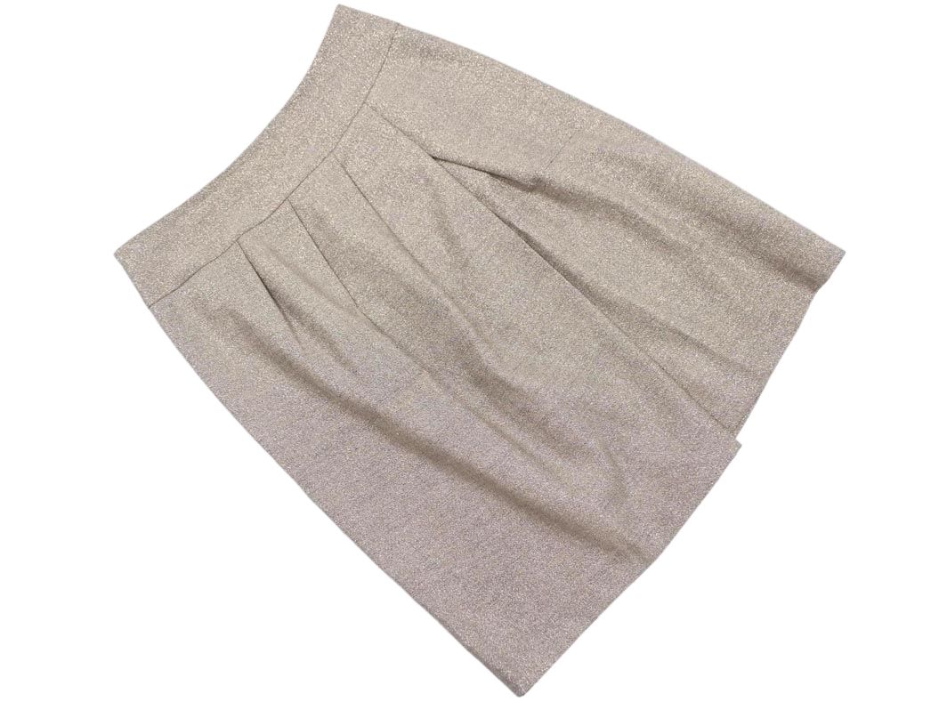 美品 NOLLEY'S 麻混 ラップ風 タイトスカート ベージュ系 リボン付
