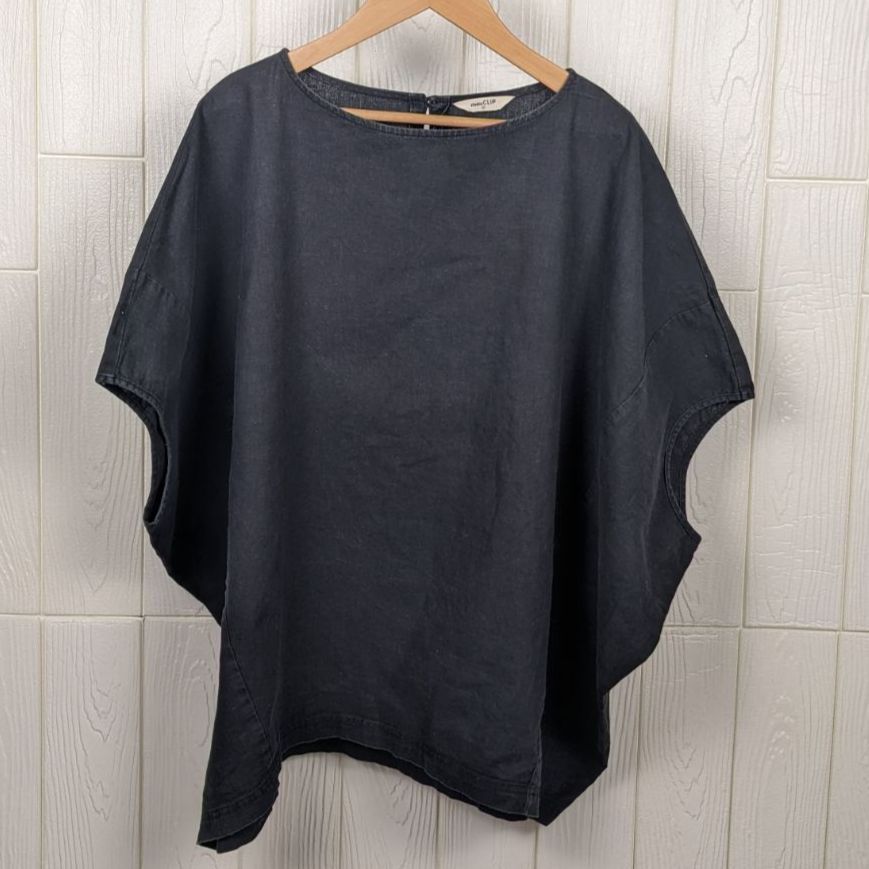 スタジオクリップ クルーネック ボーダーニット ウール リネン コットン フリー