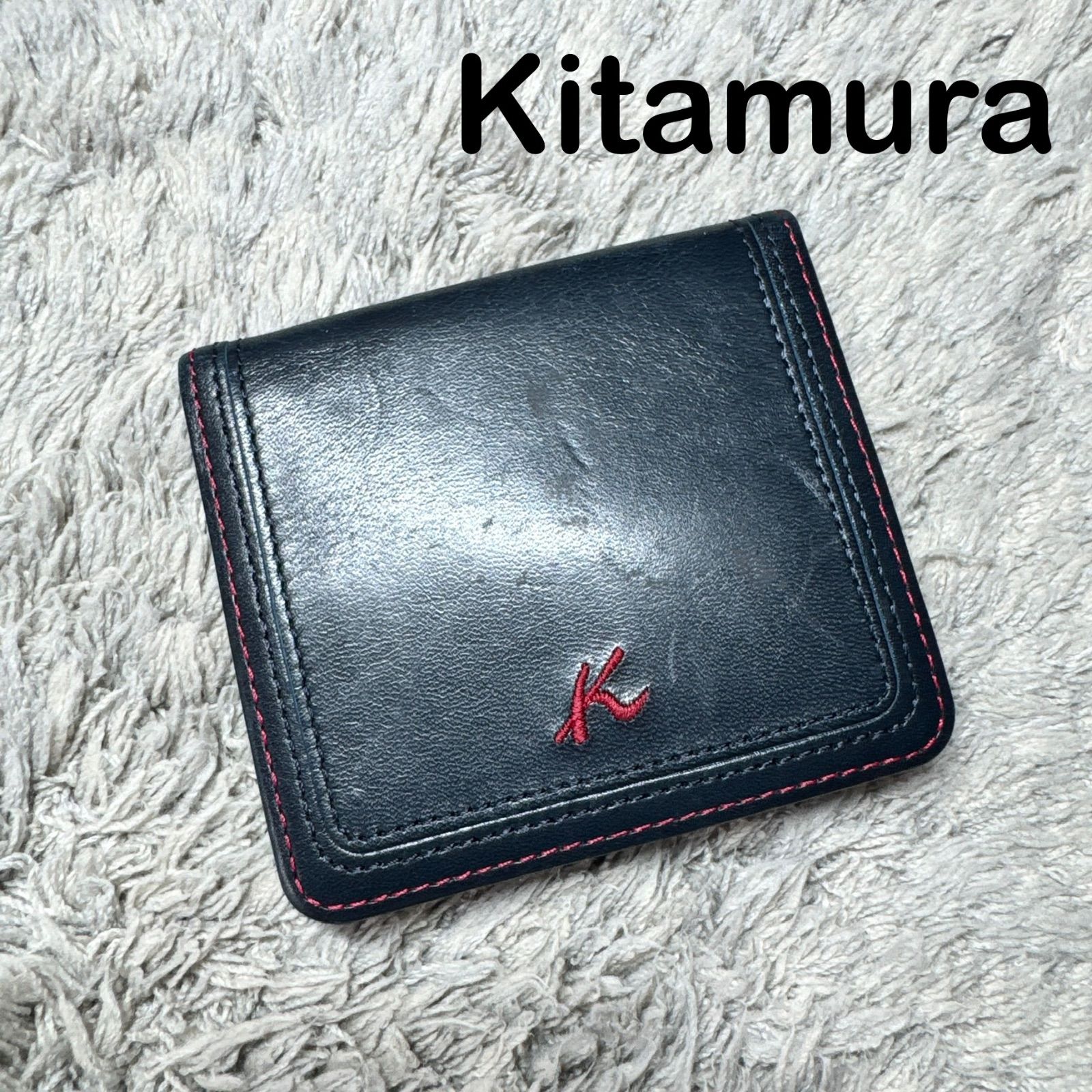 Kitamura キタムラ コインケース 小銭入れ ロゴ刺繍 レザー ネイビー
