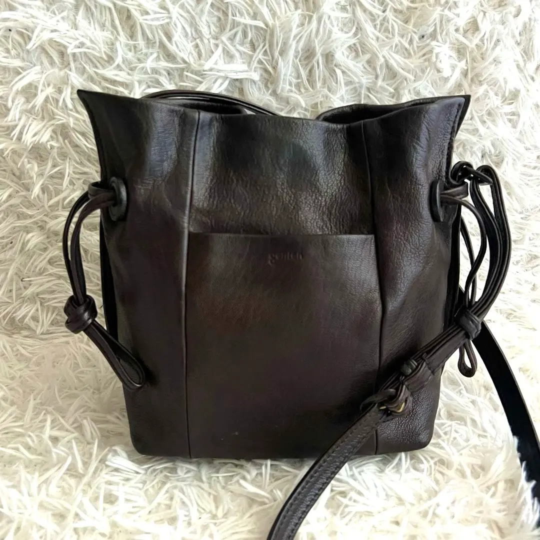 gentenブラウンレザー 巾着型ショルダーバッグ