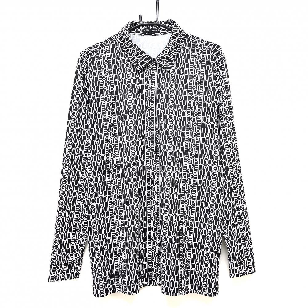 1PIU1UGUALE3 総柄 ロゴプリント 黒 ストレッチ 半袖シャツ XL