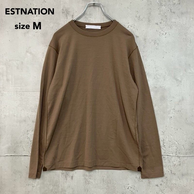 ESTNATION エストネーション ブラウン ウール混 ロングスリーブ Tシャツ カットソー クルーネック 長袖 Mサイズ 無地 シンプル ベーシック インナー 重ね着 ストレッチ 伸縮性あり ハイゲージ ニットソー ★ ■◇