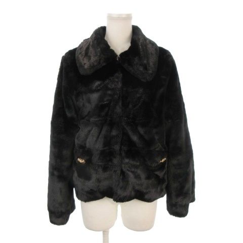 ミシェルマカロン michell Macaron フェイクファージャケット 上着 S 黒 ブラック ステンカラー ビジュー フロントフック /MN5 ■GY99