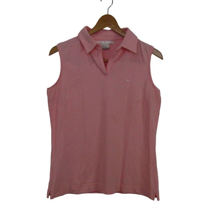 ナイキゴルフ ポロシャツ ノースリーブ ストレッチ ゴルフウエア トップス レディース Lサイズ ピンク×ホワイト NIKE GOLF 【中古】