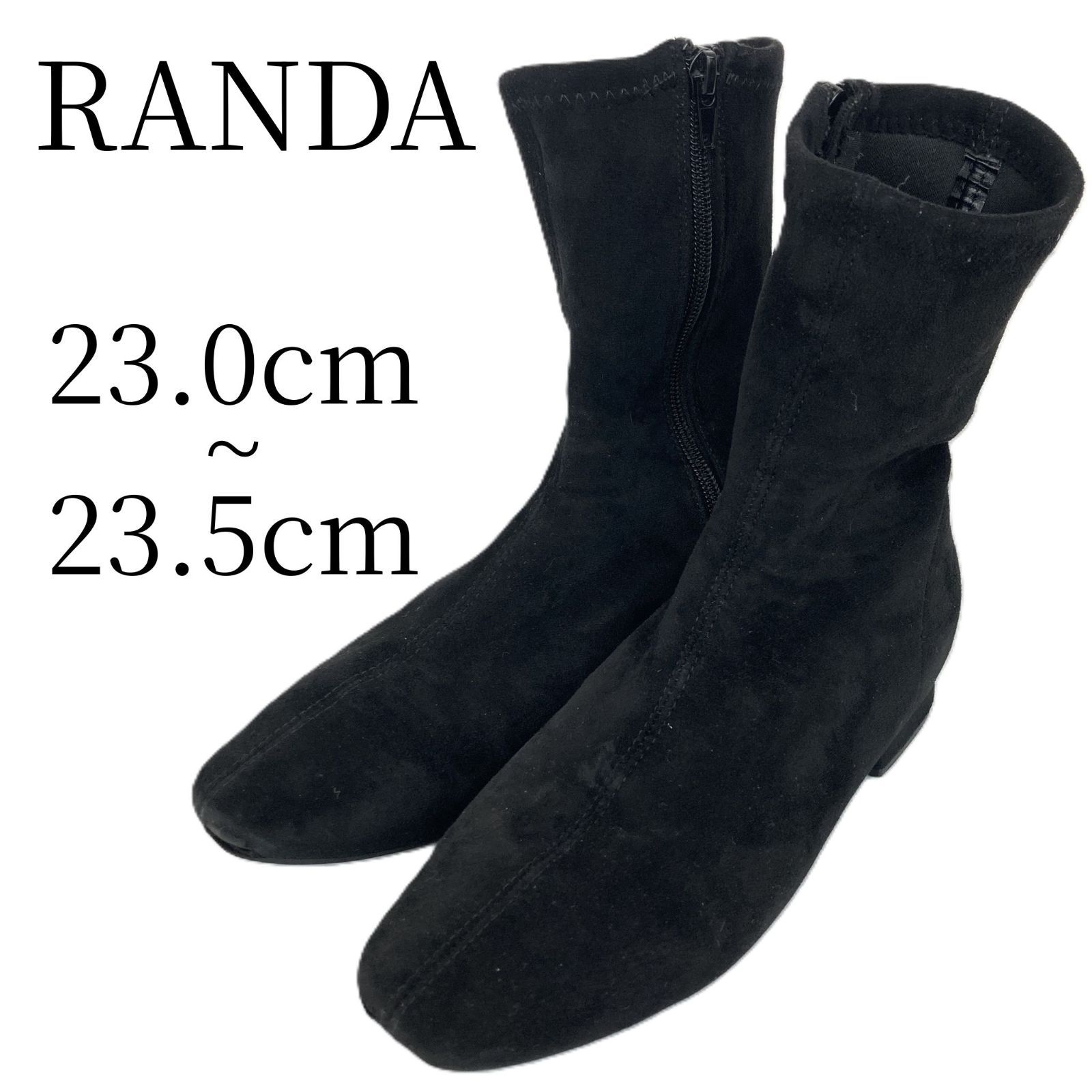 RANDA ランダ ストレッチ ソックスブーツ Mサイズ 黒 ブラック スクエアトゥ ローヒール サイドジップ センターシーム スエード調 レディース 靴