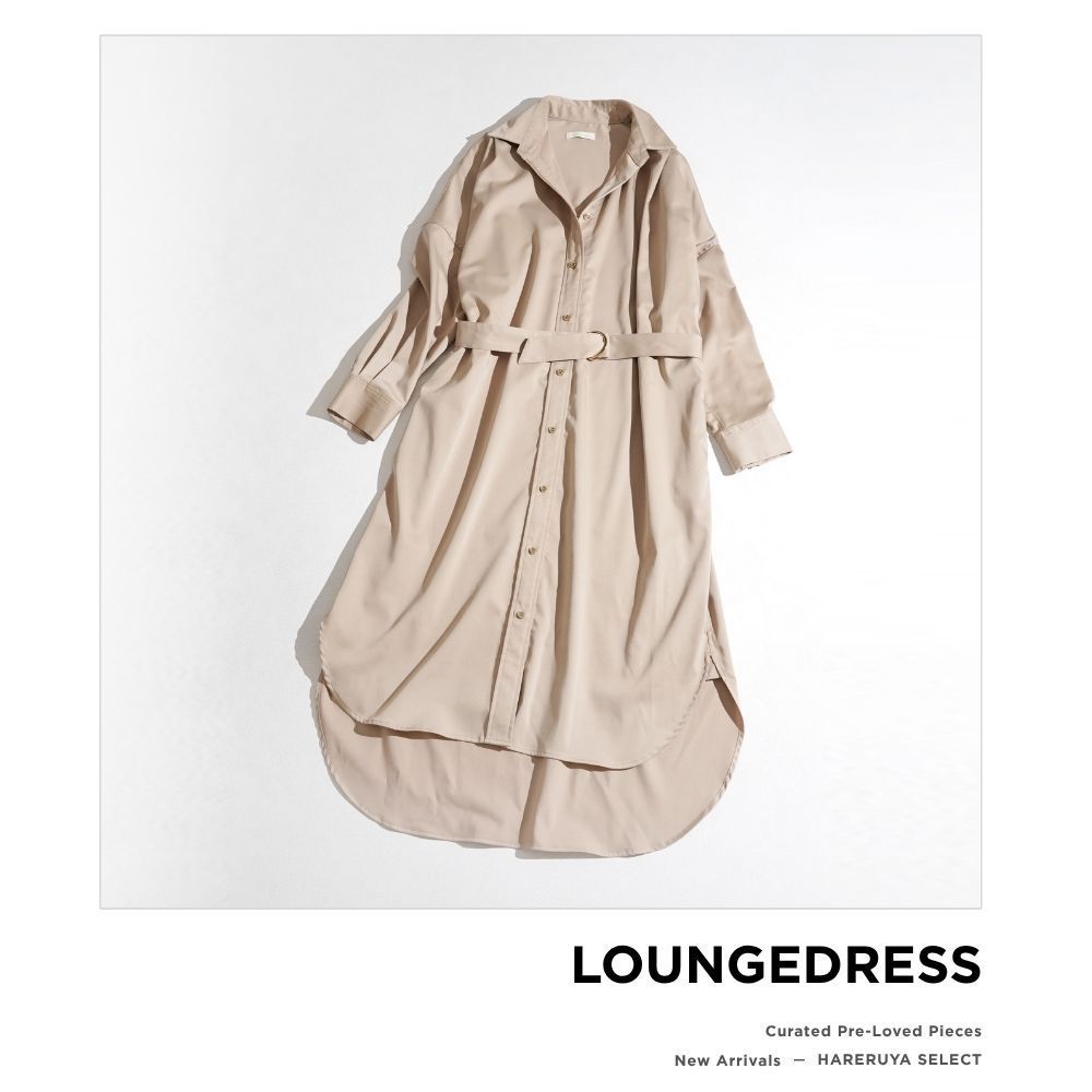 loungedress ラウンジドレス✨ベージュ ストライプ Vネック シャツ