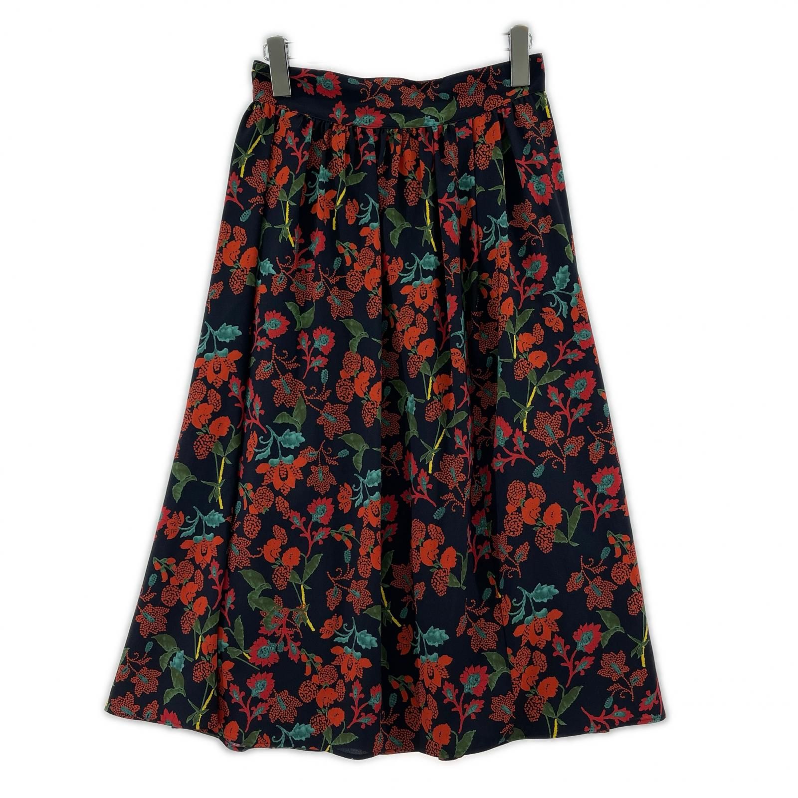 MACPHEE マカフィー 花柄 フレア ラップスカート size36/ネイビー×レッド