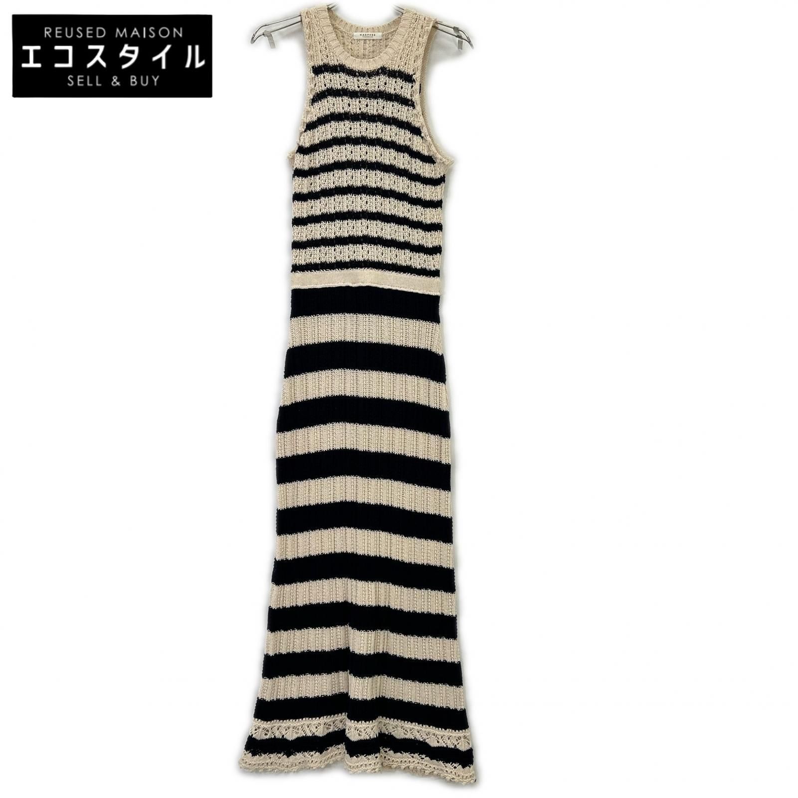 MACPHEE マカフィー ホワイト コットンアイレット アメリカンスリーブマキシワンピース 36