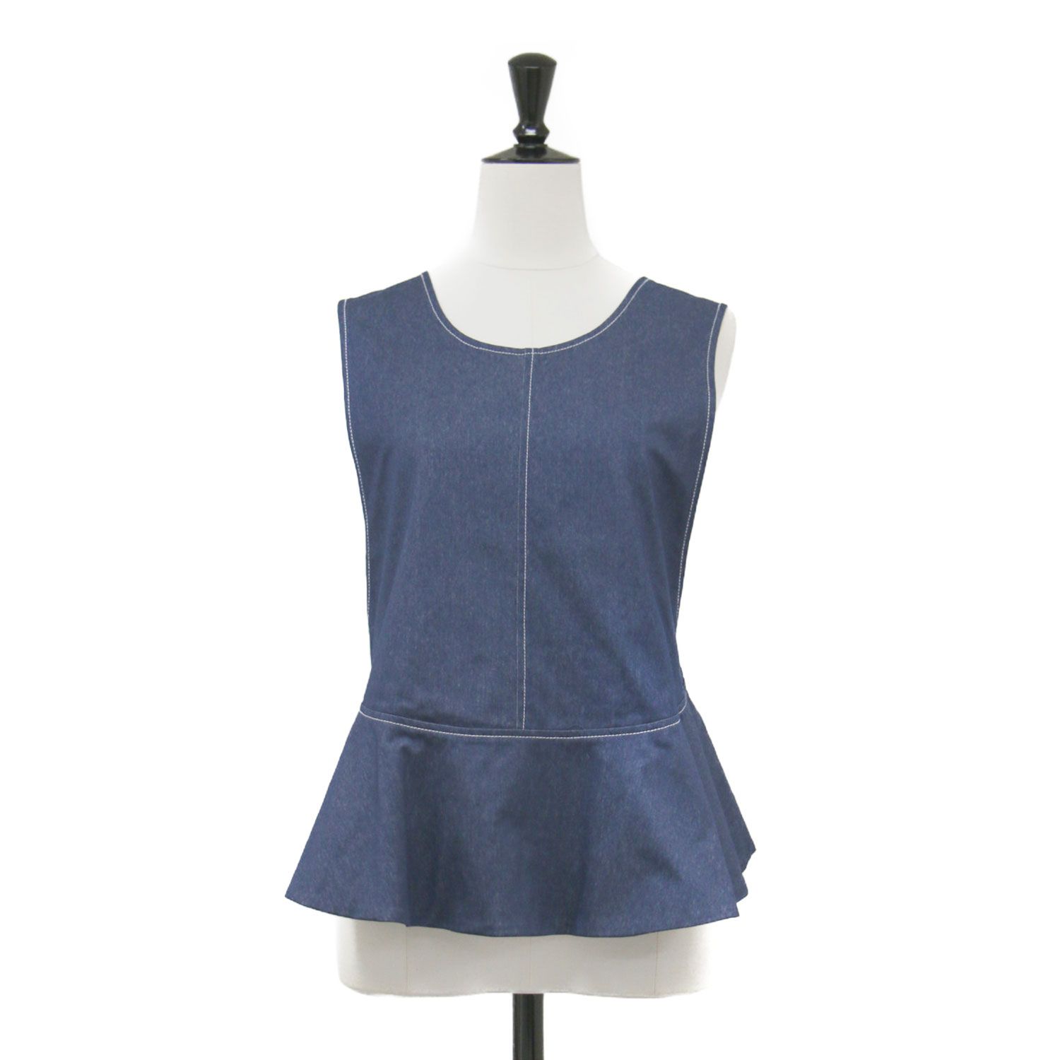 【美品】MACPHEE マカフィー ビスチェ インディゴ サイズ:S(9号) | 24春夏 コットントリコット ビスチェ / ショート丈 ノースリーブ ペプラム バックリボン ステッチ ウォッシャブル | トップス【レディース】【中古】