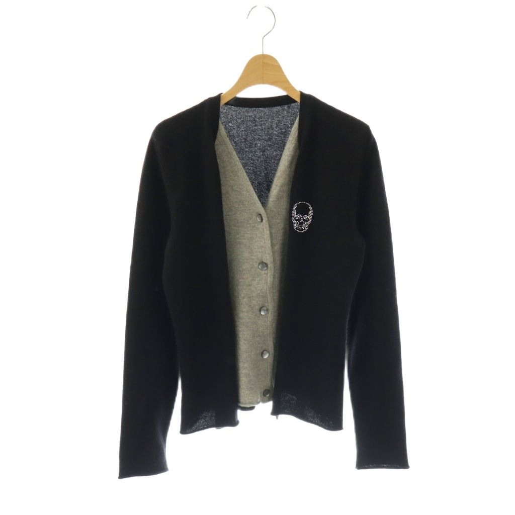 ルシアンペラフィネ LUCIEN PELLAT-FINET カーディガン ニット ドッキング スカルロゴ ラインストーン M ブラック グレー /DO