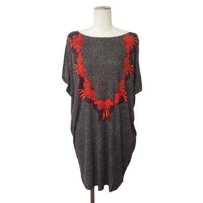 ニトカ nitca チュニック カットソー フレンチスリーブ 半袖 花の首飾りプリント ドット リヨセル コットン F ブラック 黒