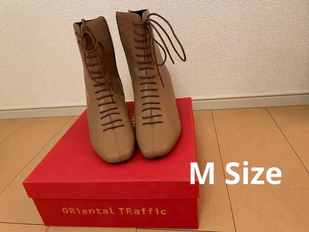 【美品】Oriental Traffic ベージュ レースアップブーツ