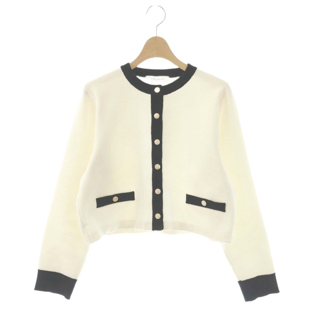 ルーニィ LOUNIE 25AW バイカラーショートカーディガン ニット 長袖 F ホワイト ブラック /HK ■OS