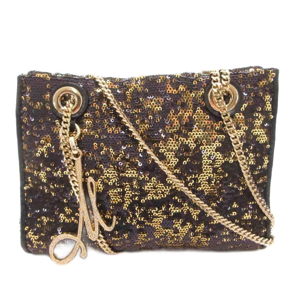 ミリー milly ショルダーバッグ クロスボディ スパンコール ゴールドカラーチェーン バイカラー 黒 ブラック /FF ■GY17