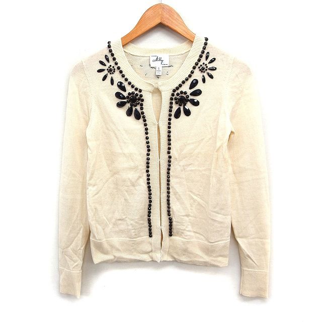 ミリー milly 装飾付き カーディガン クルーネック ウール S アイボリー 白 /FT13