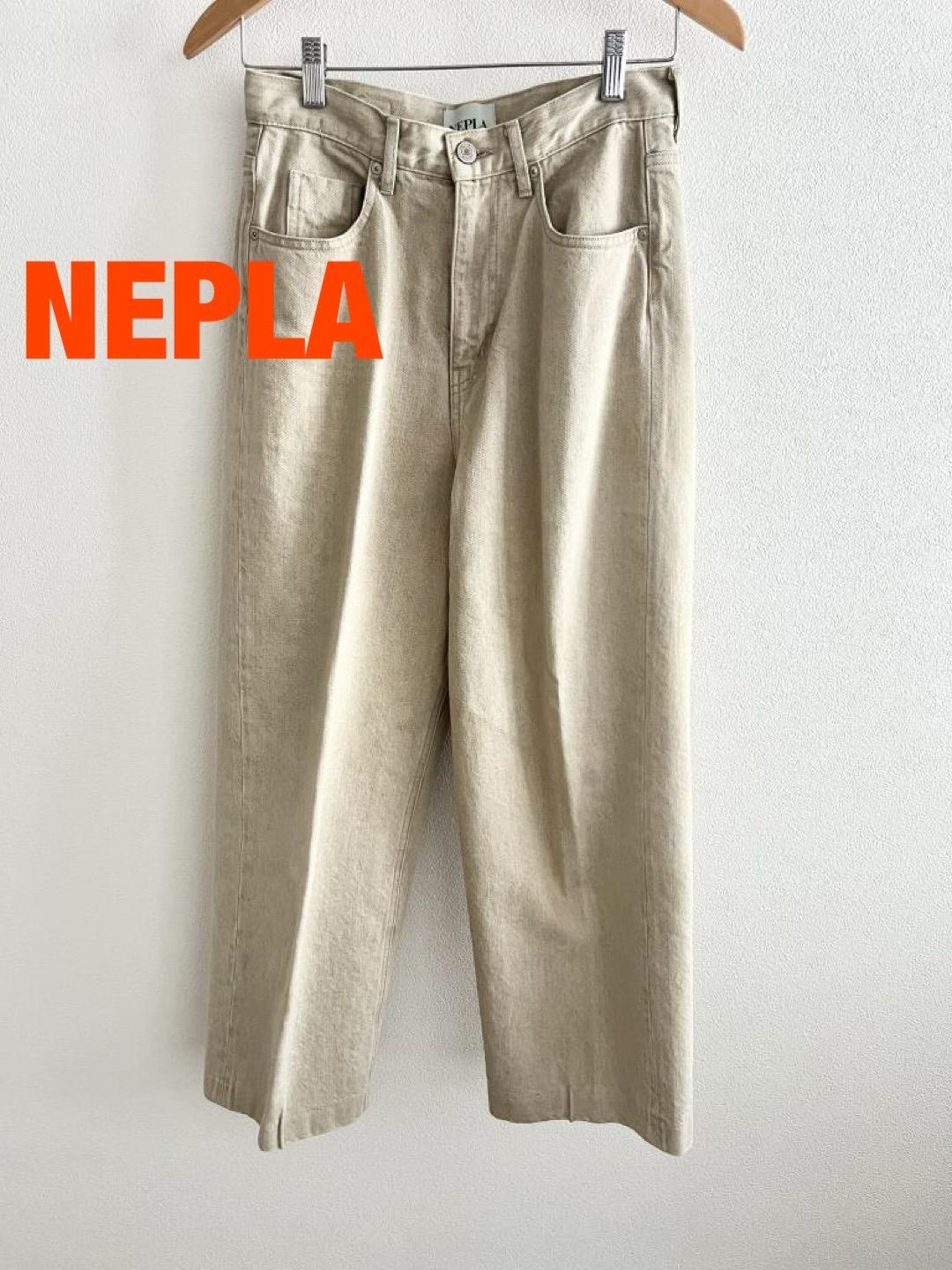 NEPLA ネプラ WIDE PANTS BOTANICAL COLAR 定価21,780円 日本製 デニム ワイドパンツ Mサイズ 24 ベージュ 綿100% カジュアル シンプル 送料込み 6465979