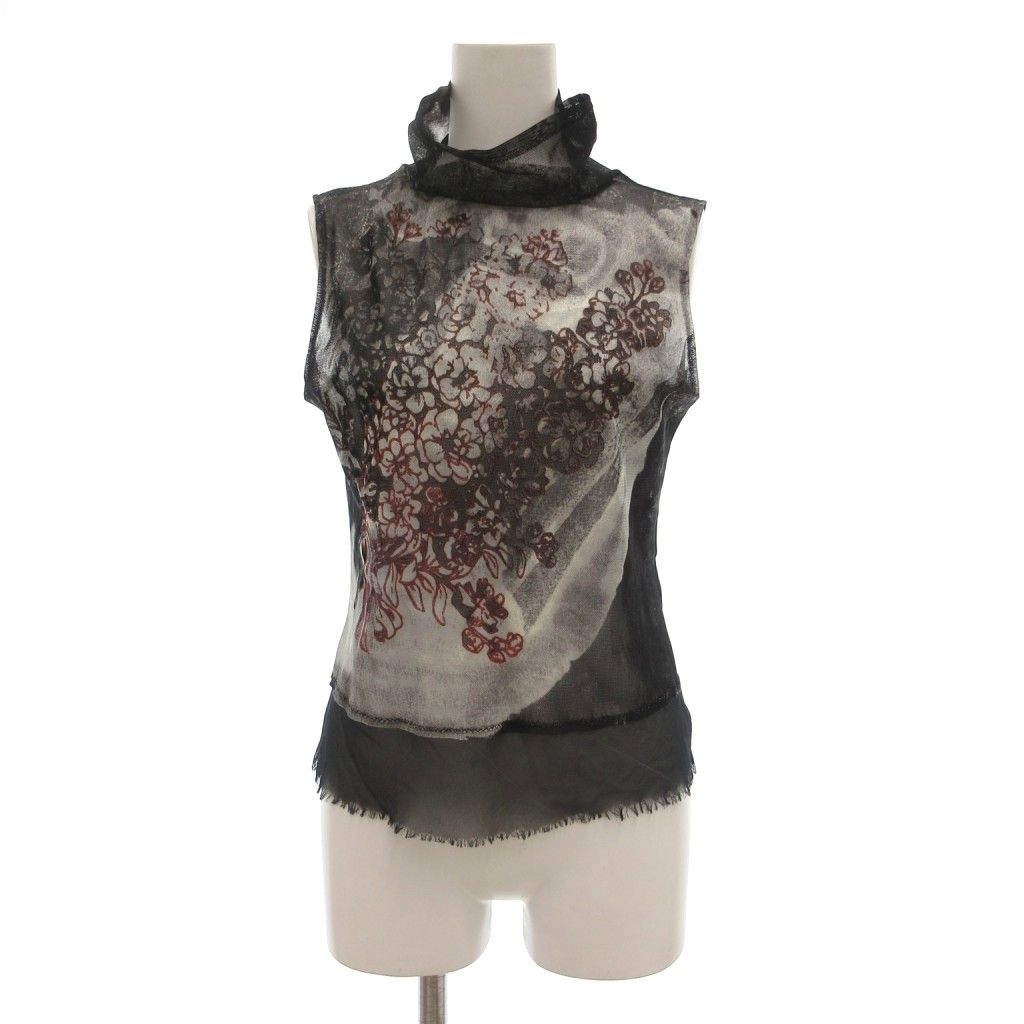 ネロ nero レース装飾プリント シアー トップス ノースリーブ ハイネック 40 ブラック 黒 /FT2
