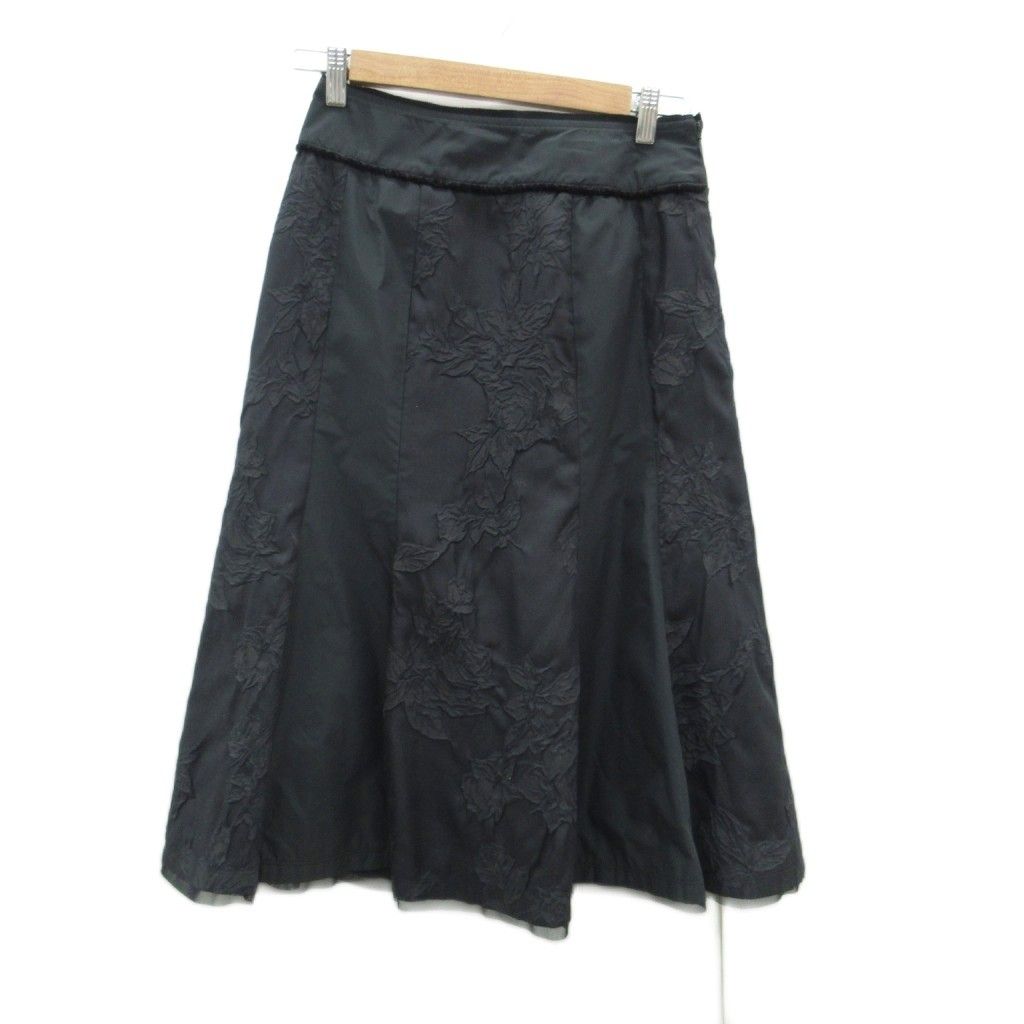 ネロ nero フレアスカート ロング丈 38 黒 ブラック 花柄 /HO37 ■GY58