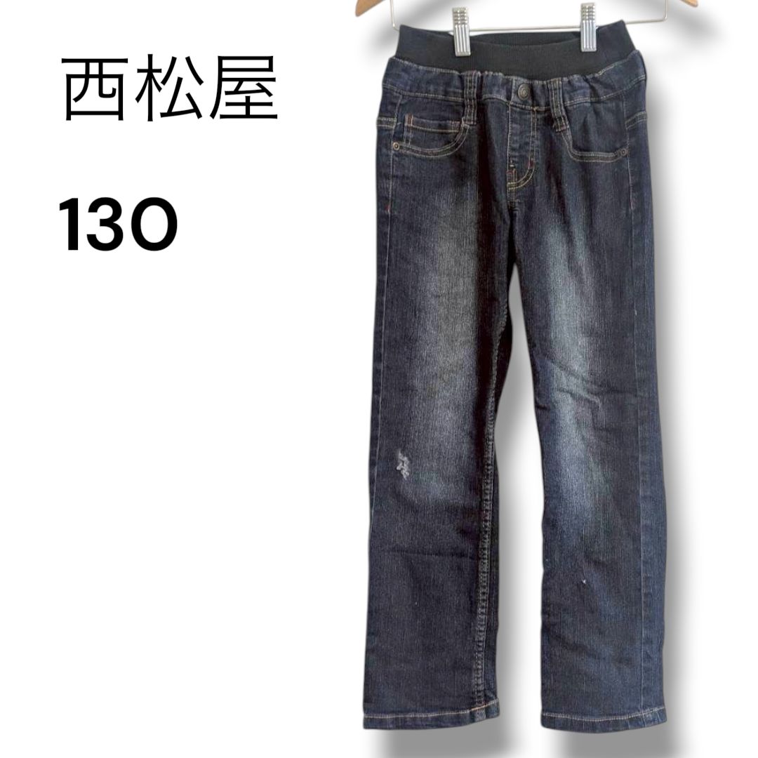 ニシマツヤ キッズ デニムパンツ 140 ストレッチ 濃紺 通学 普段使い YE