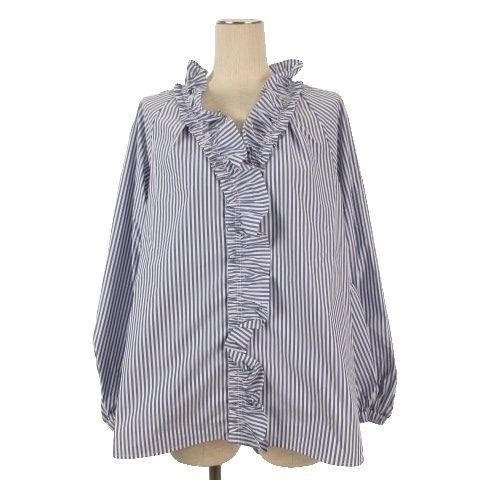 美品!PLST パールボタン ストライプ 半袖 ペプラムシャツ M